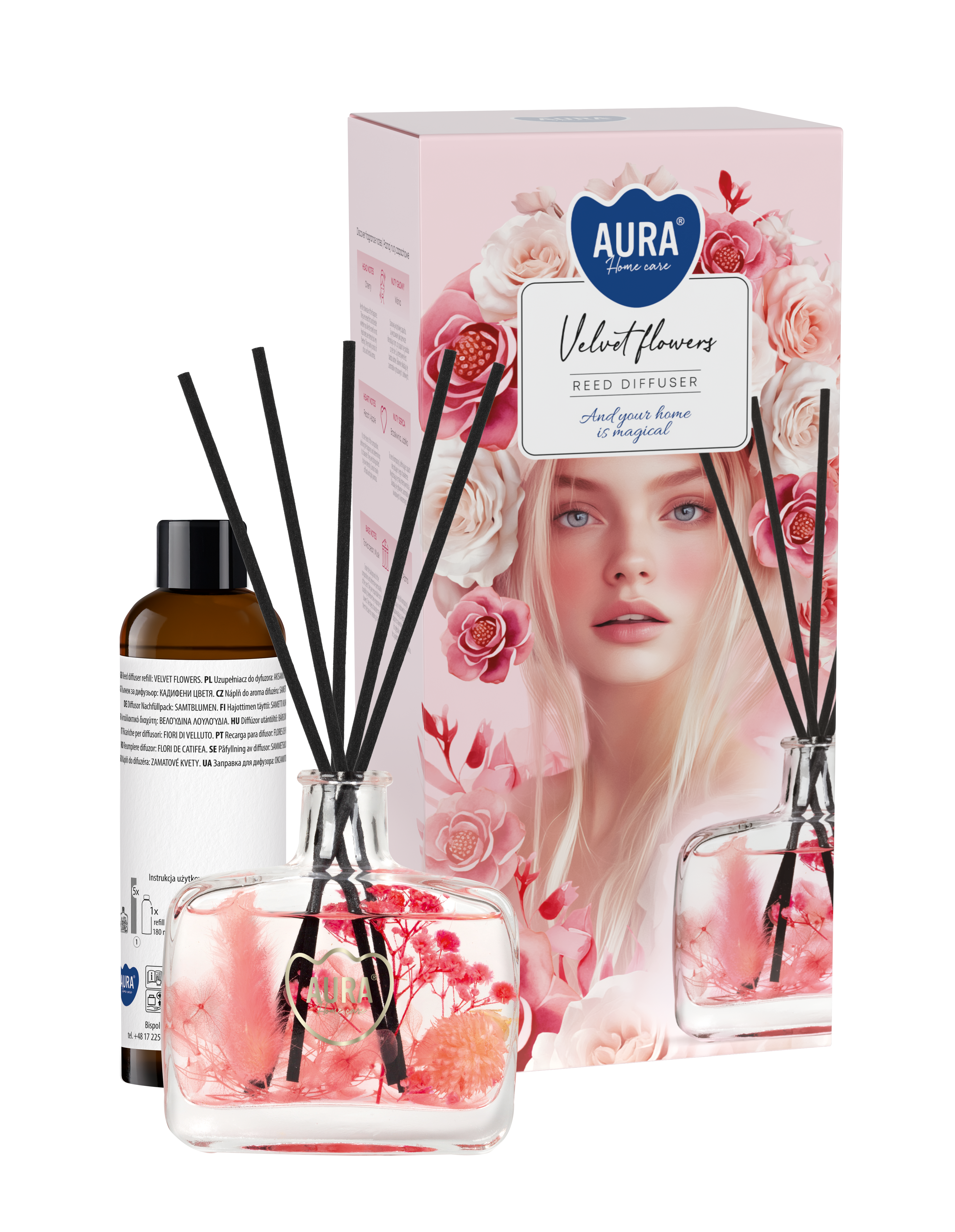 The exceptional Velvet Flowers fragrance diffuser combines fruity sweetness with warm, sensual notes. Its elegant design enchants with a subtle aroma and a decorative character that perfectly complements any interior arrangement.