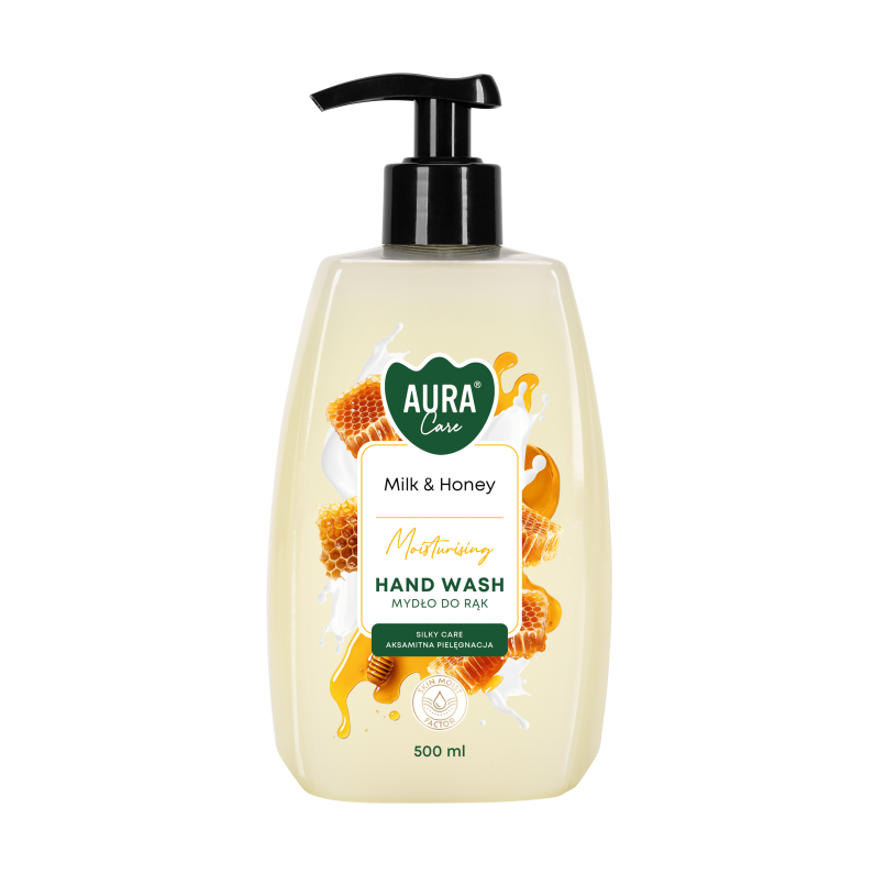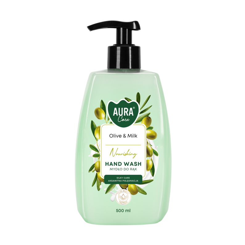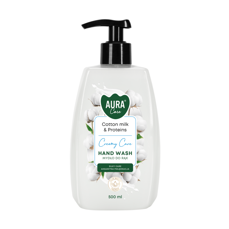 Creamy hand washes Aura Care are exceptional products that combine effective cleansing with hand skin protection. The practical 500 ml pump bottle easy dispensing for everyday hygiene. The products are dermatologically tested and safe to use.