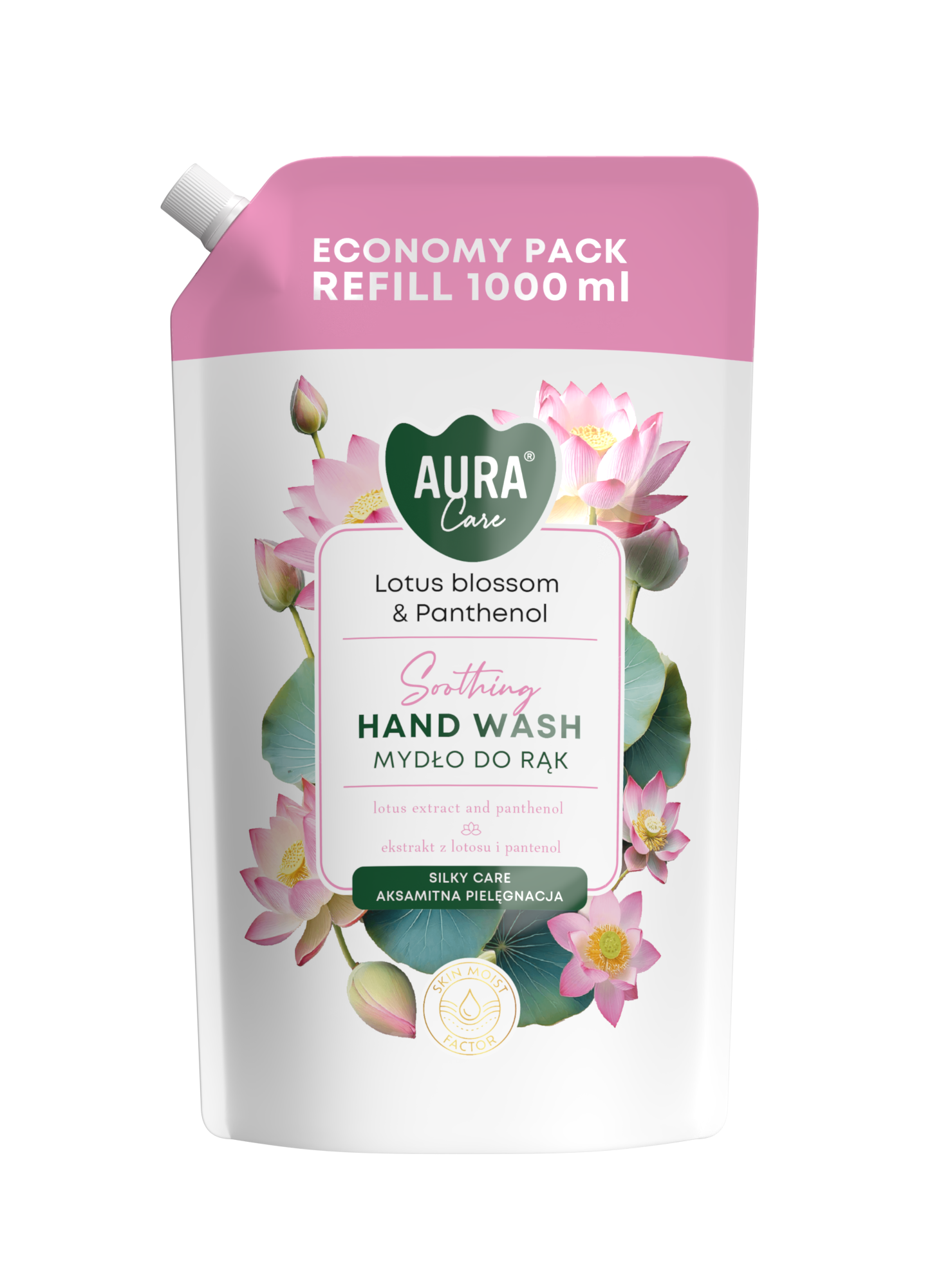 Aura Care Lotus blossom and Panthenol hand wash refill 1000 ml is an economical solution for those who value natural hand care. The rich formula with a moisturizing complex, glycerin and natural extracts leaves hands smooth and nourished after each use. The large, efficient packaging allows you to reduce plastic consumption and enjoy your favorite soap for longer.