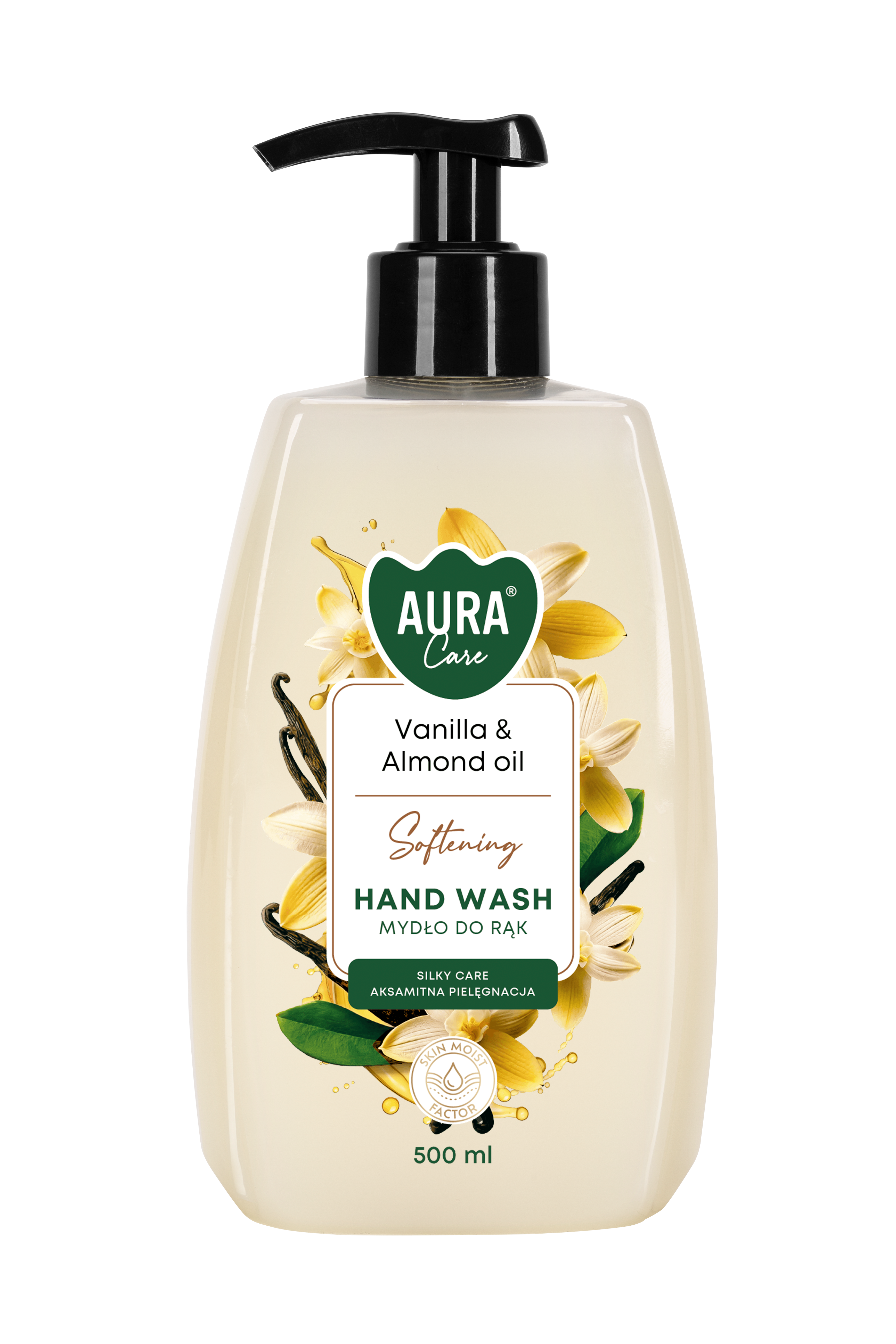 Aura Care Vanilla and Almond oil creamy hand wash with dispenser is a daily ritual that combines cleansing with skin nourishment. The formula without microplastics, enriched with a moisturizing complex, glycerin, and almond oil, leaves skin smooth, soft, and delicately scented with vanilla. It's the perfect choice for those seeking gentle and effective cleansing.