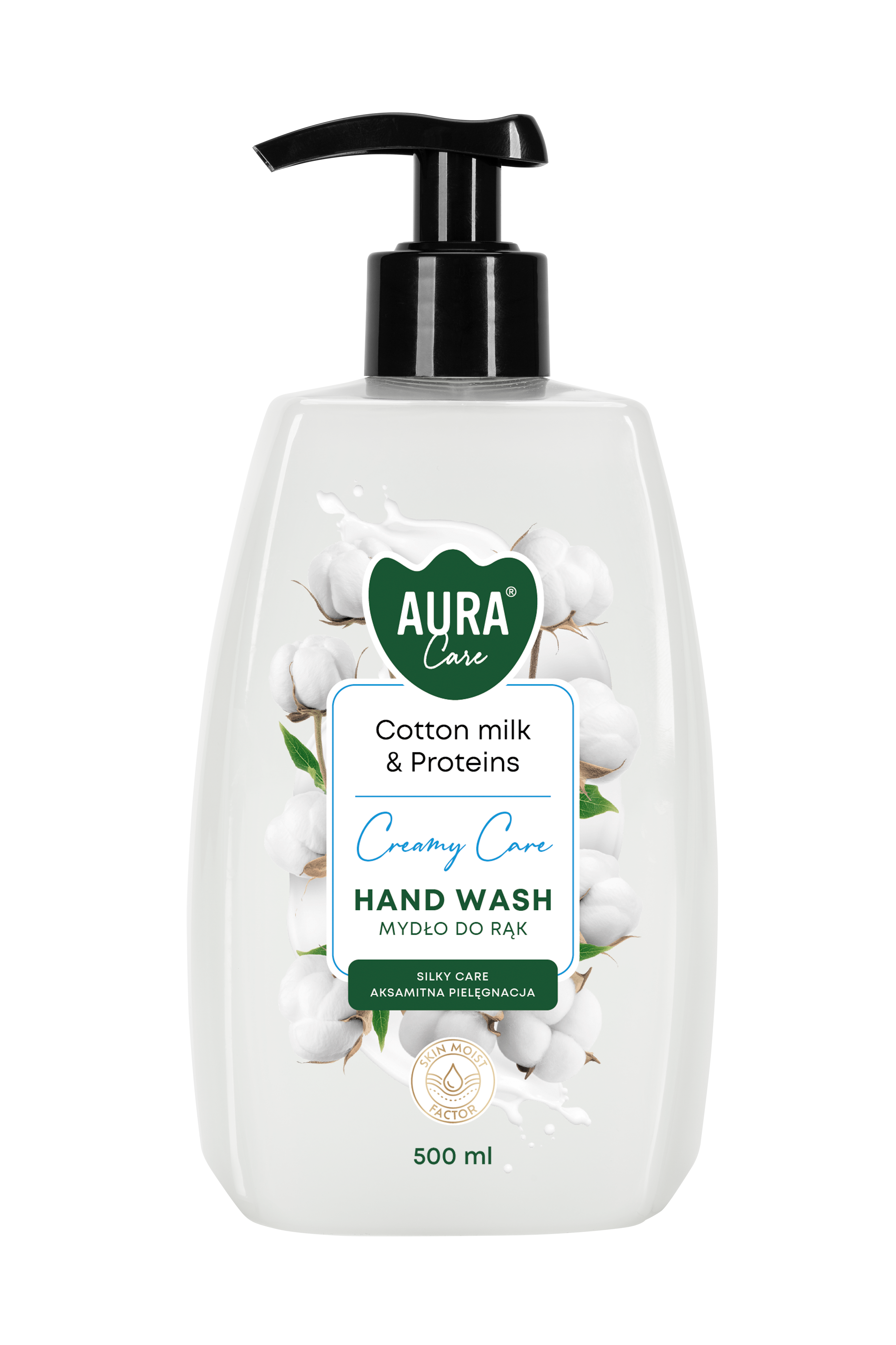 Aura Care Cotton milk and Protein creamy hand wash with dispenser is a daily ritual that combines cleansing with skin nourishment. The formula without microplastics, enriched with a moisturizing complex and glycerin, as well as cotton milk and wheat protein, leaves skin smooth, soft, and fragrant. It's the perfect choice for those seeking gentle and effective cleansing.
