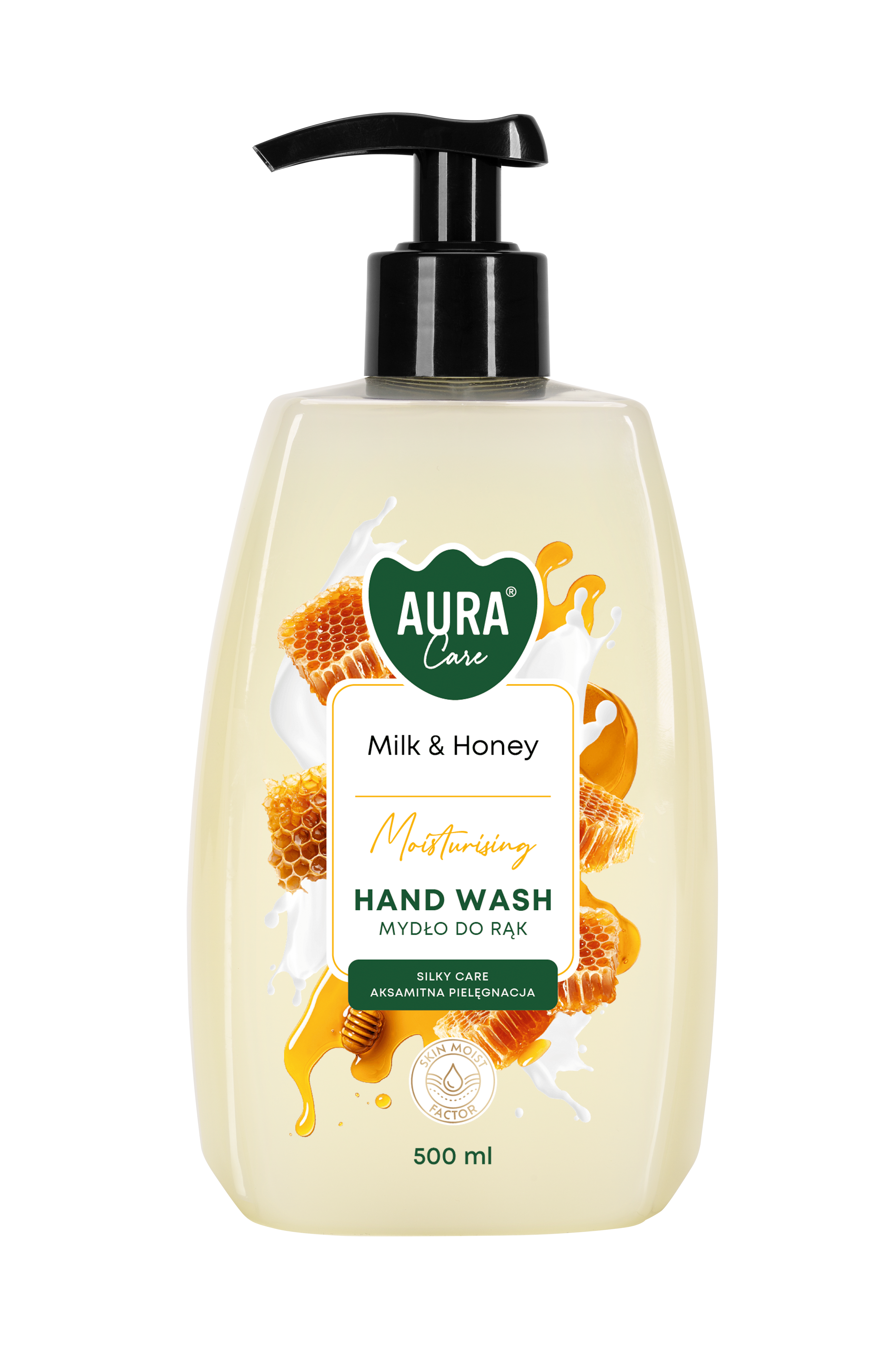 Aura Care Milk and Honey creamy hand wash with dispenser is a daily ritual that combines cleansing with skin nourishment. The formula without microplastics, enriched with a moisturizing complex and glycerin, honey, and milk proteins, leaves skin smooth, soft, and delicately scented. It's the perfect choice for those seeking gentle and effective cleansing.