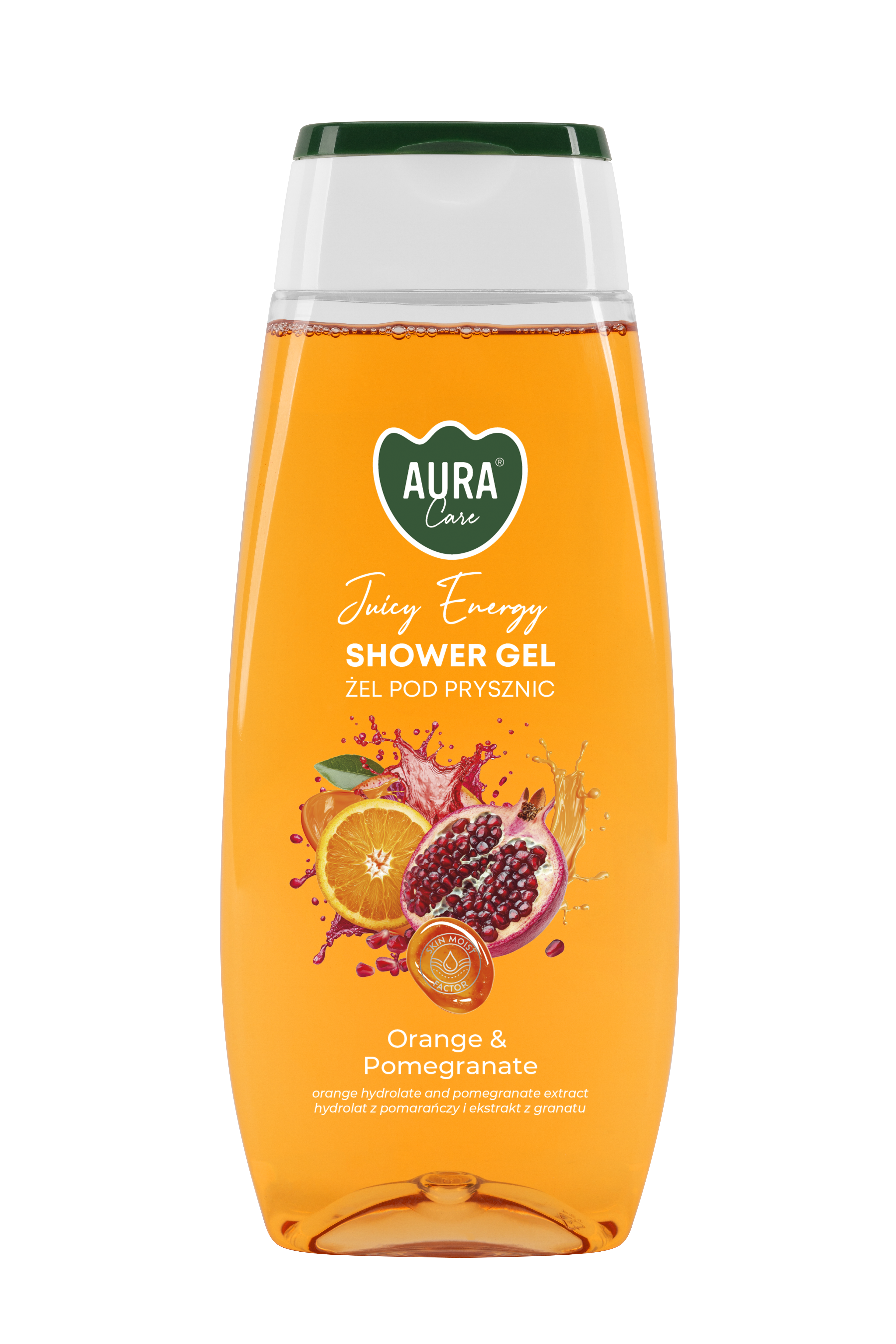 Aura Care Orange and Pomegranate shower gel is an excellent choice for those who value freshness and natural care. Its clear, tinted formula with a moisturizing complex and glycerin provides skin with intense hydration and a silky-smooth feel. Orange and pomegranate is an energizing combination of fresh citrus and sweet fruit notes that stimulates the body and mind.