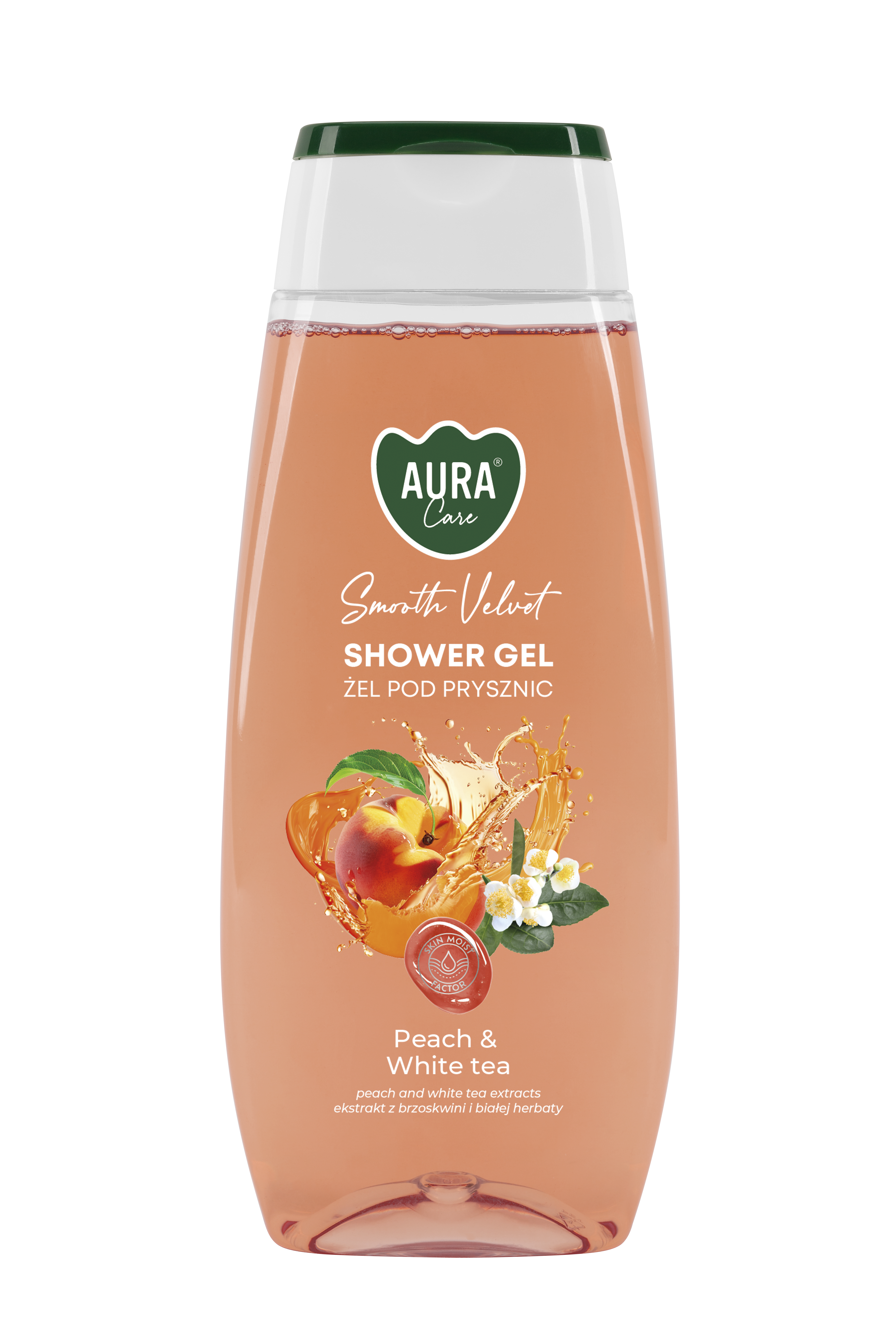 Aura Care Peach and White tea shower gel is an excellent choice for those who value freshness and natural care. Its clear, tinted formula with a moisturizing complex and glycerin provides skin with intense hydration and a silky-smooth feel. The subtle scent of juicy peach and light white tea energizes and puts you in a good mood every day.