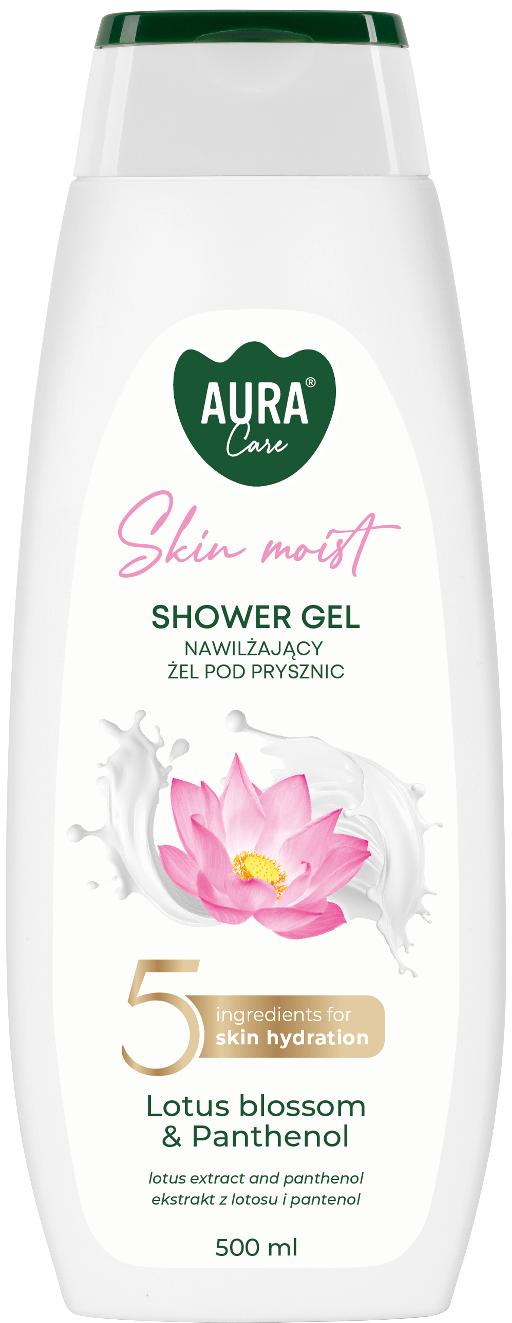 Creamy shower gel 500 ml Lotus blossom and Panthenol is a perfect product for everyday use. Its velvet formula, enriched with a complex of five moisturizing ingredients – sodium salt, urea, amino acids, glucose and lactic acid – provides skin with long-lasting and deep hydration already while bathing. Contained in the composition lotus extract and panthenol also leave the body soft and smooth to the touch and envelop it in a sensual fragrance.